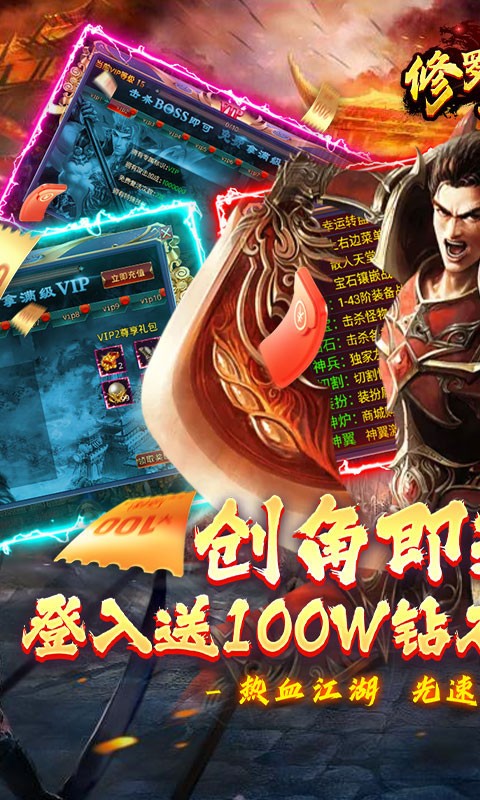 1、上线就送vip15,百万钻石,千万元宝,狂暴攻速神装!幸运转盘白嫖百抽,神装宝石送不停,助你梦幻开局!