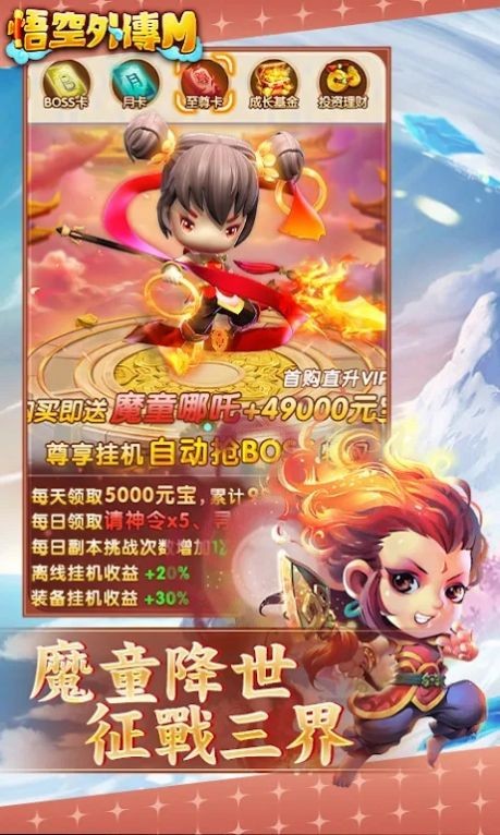 悟空外传M是一款精品制作的西游角色战斗手游,悟空外传M游戏重塑新周期的西游故事,以及增加各种玩法,在广阔的大陆没完没了的内容,可以感觉更有趣和迷人的,以不同的方式挑战,巨大的无尽的时代,各种引人入胜的故事,富文本将为你打开许多改变了味道,试图加入到战斗!