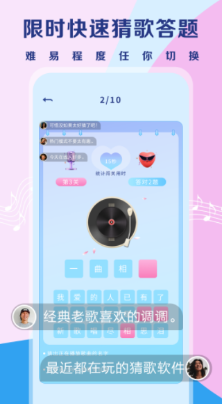 2.该系列内容全面,老少皆宜,在规定的猜歌时间内猜对歌名,在关卡中完成更多的目标!