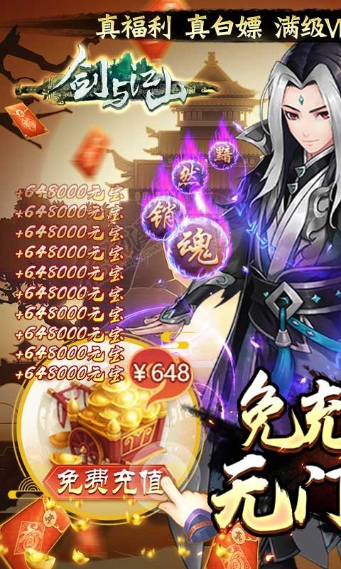剑与江山满V版一款国创武侠奥义对决手游大作。开局赠送满v、天品绝世神招-如来神掌、橙色保命神兵-神玉古鼎,再免费狂点648充值直升满级VIP15。登陆送三万真充,日常活跃拿欧皇盲盒。四大转盘狂抽绝世功法、神兵,海量资源材料拿到手软,助各位大侠独步武林!