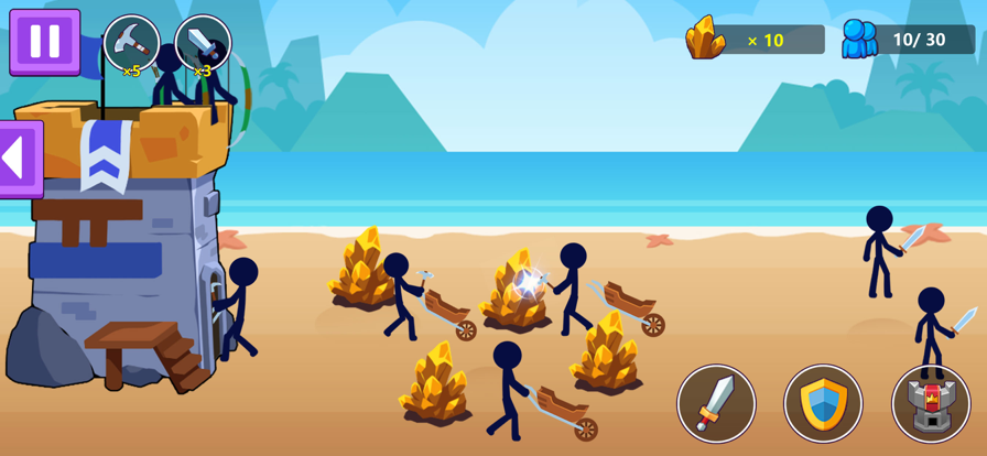 你需要让你的部落发展的更好,拥有更多金币,购买大量武器,从而提高火柴人战士的能力。
