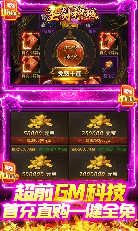5、充值比例1:5000,首冲最高10倍返利,超值投资千倍返,1折道具限量卖!