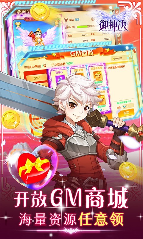 御神决满V版是一款二次元题材的冒险类ARPG手机游戏。登录即可开启万抽转盘,每日可参与1000次转盘抽奖。击杀boss更有几率获得真充卡碎片以及海量资源,平民玩家也能畅享游戏。日常活跃就送100御神币,签到送100元充值券,助你轻松走上游戏巅峰。