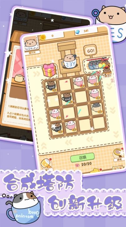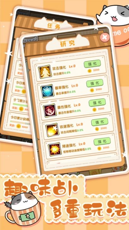 2.可以开发各种不同的猫,这里还有大量的猫咪塔防道具可以合成的,体验更有趣的模式游戏;