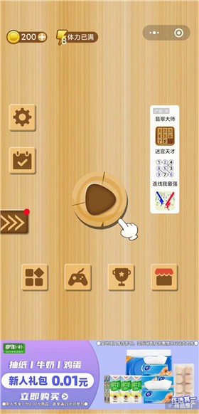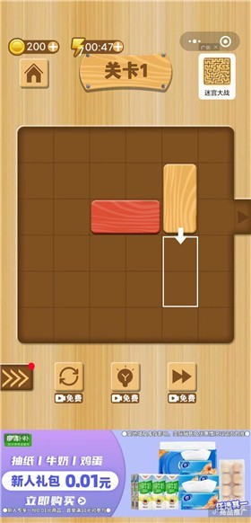 3.划动操作模式,移动木块,开始冒险挑战。