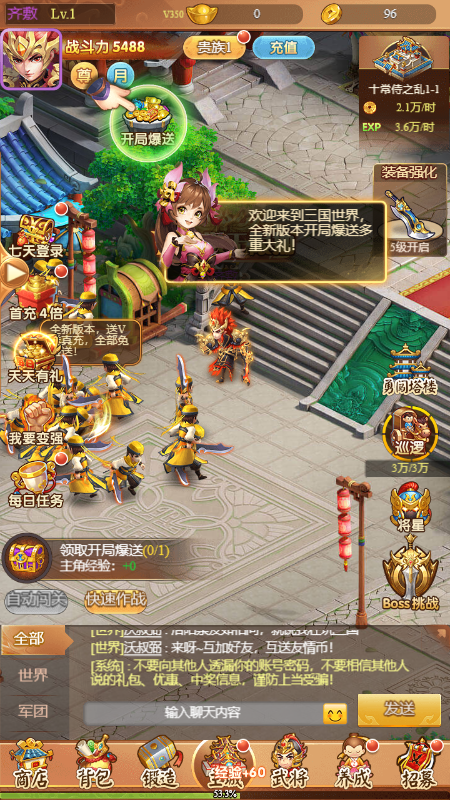 3.玩家要在游戏中尽量的去收集武将,提升自己的战斗力