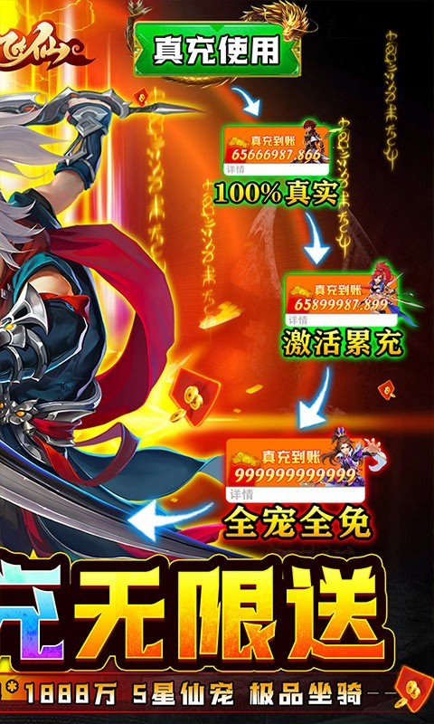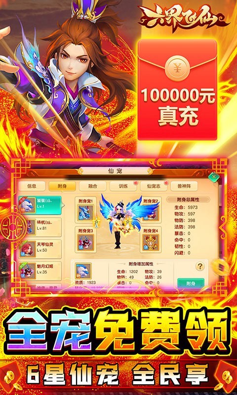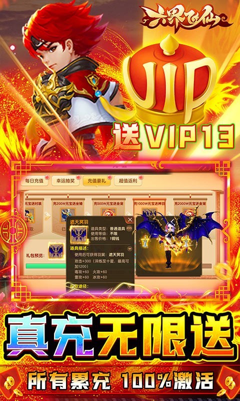 六界飞仙BT版是一款唯美的Q版3D萌系仙侠手游。每日登录免费开启真充礼包,更有20W真充和上亿元宝免费送。无限转盘永久无限抽真充,100%获得真充卡。月卡特权六界寻宝元宝消耗8折,终身卡商城购买所有道具统统8折。