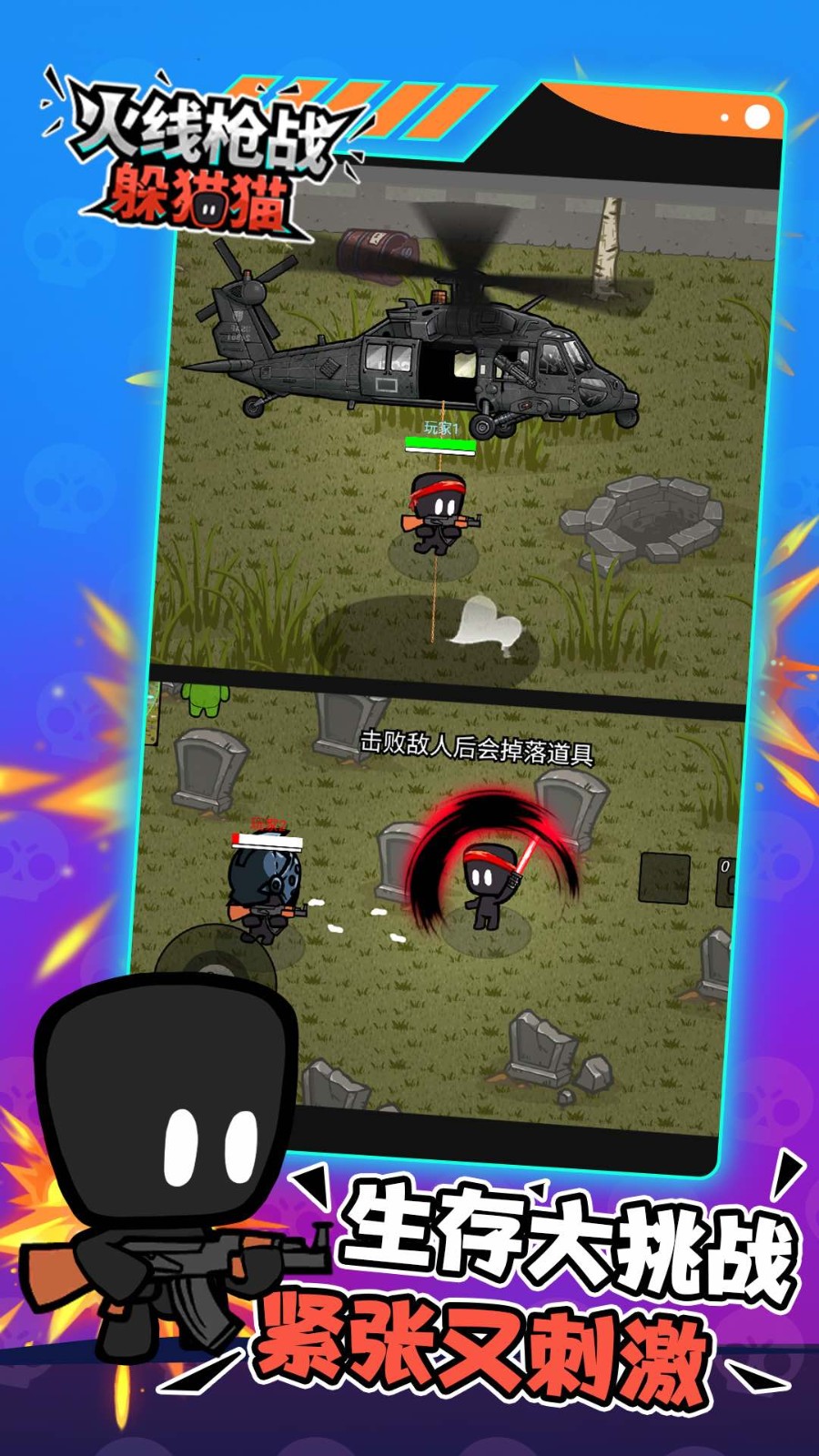 火线枪战躲猫猫是一款吃鸡射击冒险对战游戏,各位玩家可以在不同的地图进行探索,去搜集到更多厉害的武器,可以提高自己的战斗实力参加躲猫猫大战,火线枪战躲猫猫游戏快速的去击败大量的敌人,只要成功的击败完敌人,就能够让自己获得了游戏的胜利完成枪战挑战