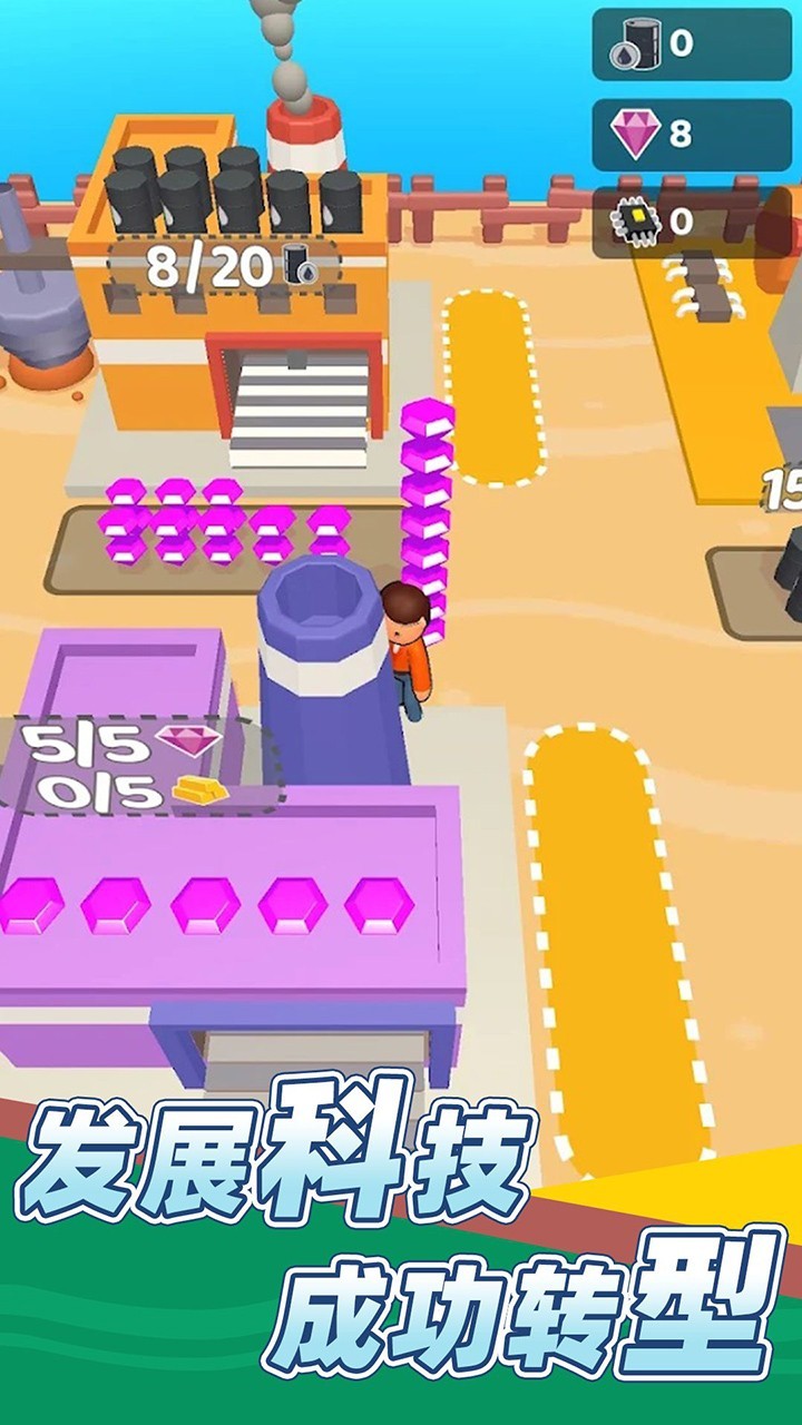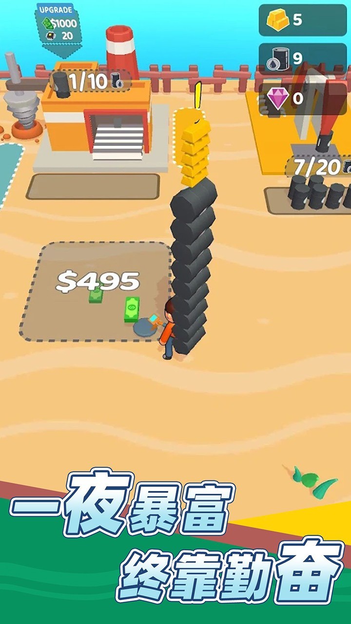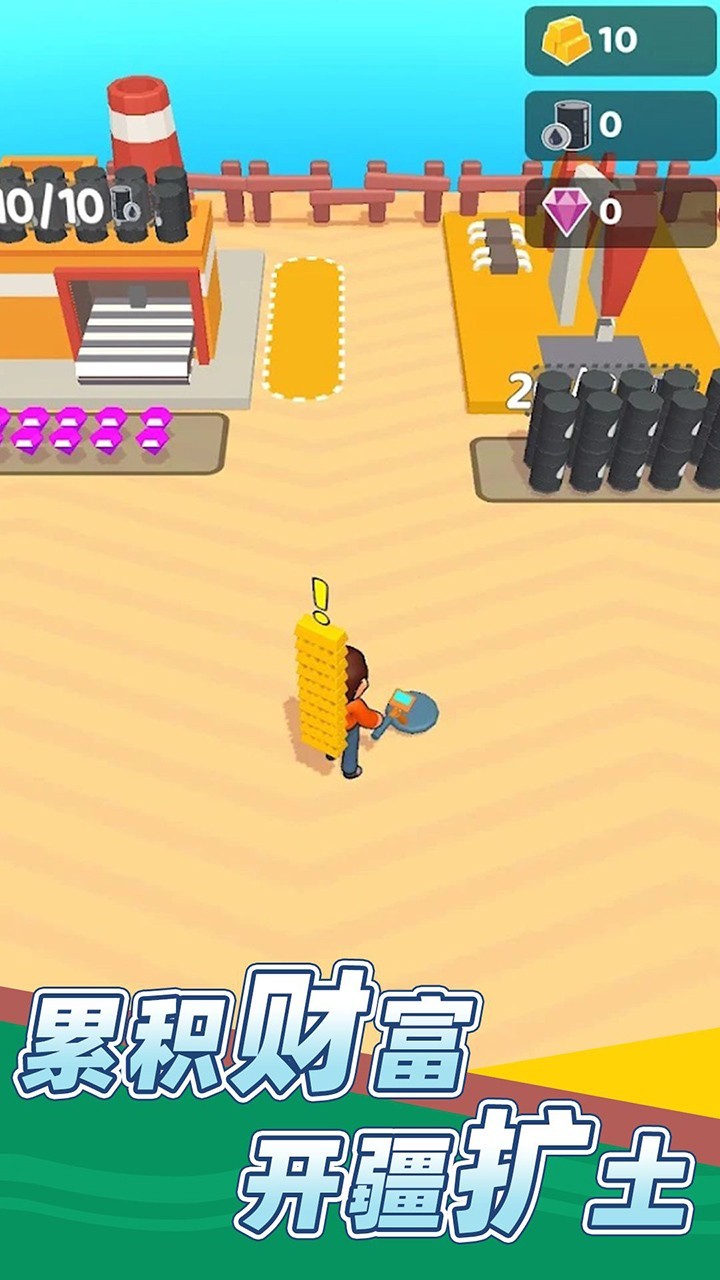 一个没用的可怜家伙,弄了个探测器,突然发现到处都是金子!穷人用探宝器,挖出来卖。建立和升级钻机和工厂。他一夜暴富,似乎还不满足。他开始前往下一个岛屿,准备建立一个帝国!