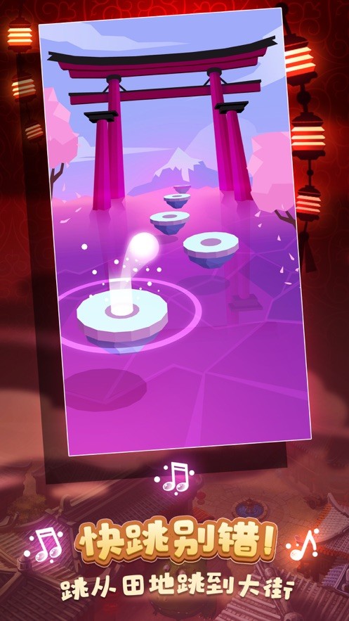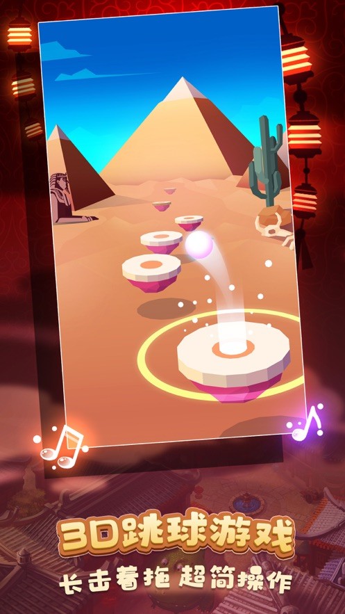玩家可以自由的操作小球,轻松畅快的环游世界,多样化的玩法等你体验,跟随着音乐节奏一步步的体验,让你跳跃的时候更加的轻松,游戏的玩法就跟跳一跳的升级版本一样,超多的关卡等着你。