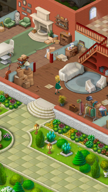 2.卡通精美的场景高清的画质,玩家将帮助角色通过闯关的方式获得重新装修所需要的材料