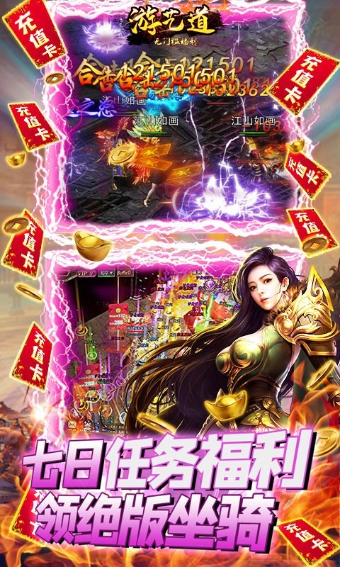 游艺道无门槛福利,这是一款单职业多人在线角色扮演类手游。开局送两套时装,上线即送贵族14,每日可领真充卡,首日在线90分钟可领大量真充卡碎片。大量装备和道具都有机会通过打野怪的方式获得,增加经验。精美的游戏画质,流畅的操作手感,玩家很容易上手。