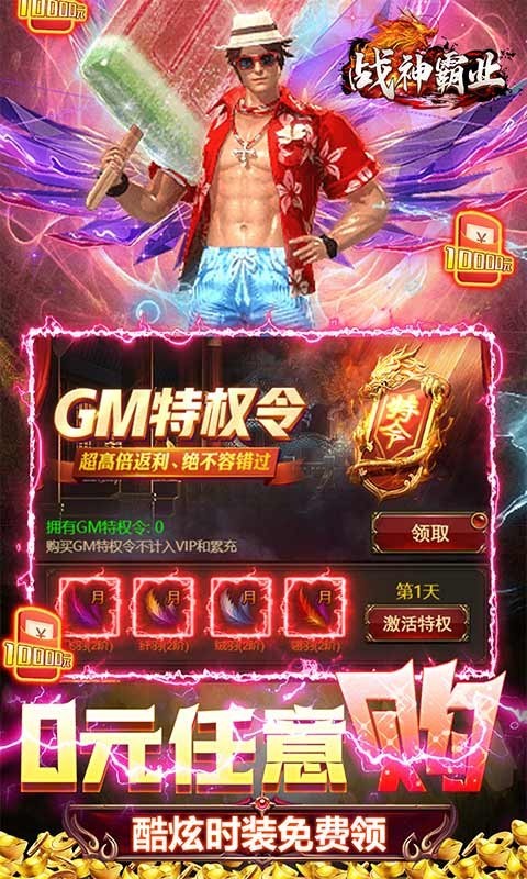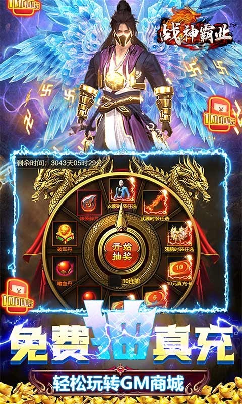 战神霸业GM科技提充是一款四职业经典传奇动作手游。上线送vip15、元宝*1000000、金币*10000万、绝版酷炫时装。每日登录送无限真充卡,元宝用到手抽筋。全新GM特权,海量资源统统1元宝购买;无敌资源1000倍返利,挂机爆无限真充。