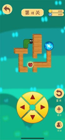 3.在游戏中通过使用自己的头脑,帮助贪吃蛇顺利的吃到对岸苹果,解锁相应的内容