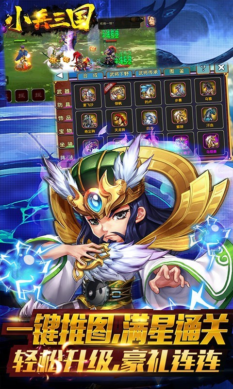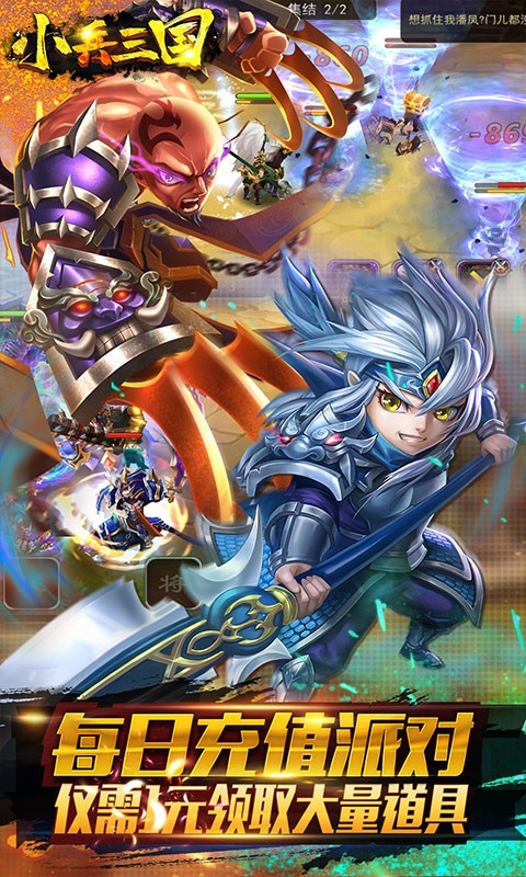 小兵三国元宝狂欢版是一款经典互动的卡牌游戏。上线即送满级VIP20、20000元充值卡、300W铜钱、元宝*30000、金币*3000000、所有紫色神将,体验充值大佬的快感。每日3次定时补给,每日畅领元宝体力,让你轻松畅玩。最强充值派对,最低1元起,连续充值豪礼天天领。