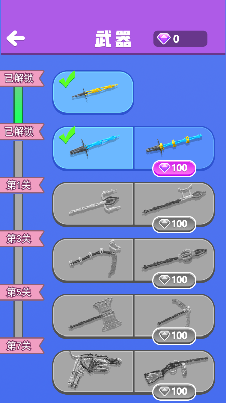 拼个大武器是一款魔性闯关跑酷自由休闲游戏,非常喜欢的卡通形象,模式设计更加的逼真玩起来更过瘾,拼个大武器游戏玩法非常的休闲,你可以给你的小人换上不同的颜色服装进行闯关挑战,发挥出它独特的作用,大量的道具每个关卡都会给你增加难度