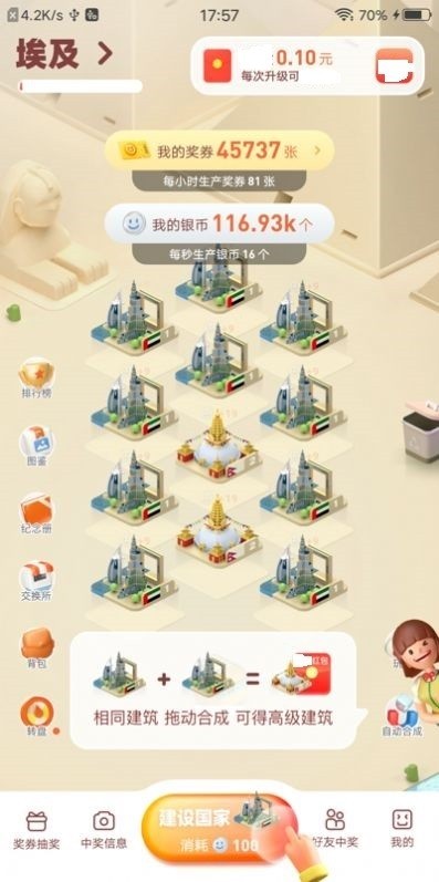 2.有趣的合成方法,解锁更高级别的设施和建筑,为你增加每秒收益的黄金收益;