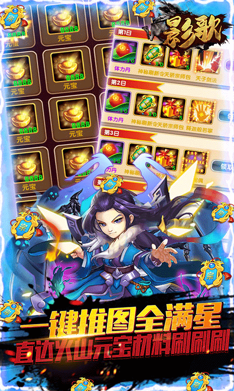 7.一键推图解放双手,关卡随处掉元宝,99次扫荡疯狂点,元宝从此再不愁!