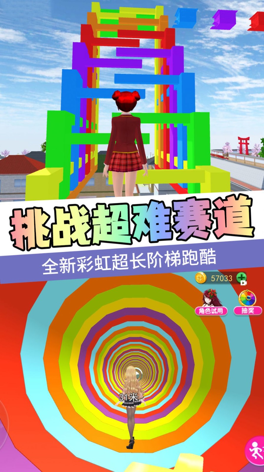 1.在樱花高校中去变身跑酷,还可以让你去愉快的冒险,享受每一次关卡中的特别体验。