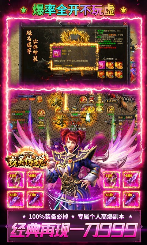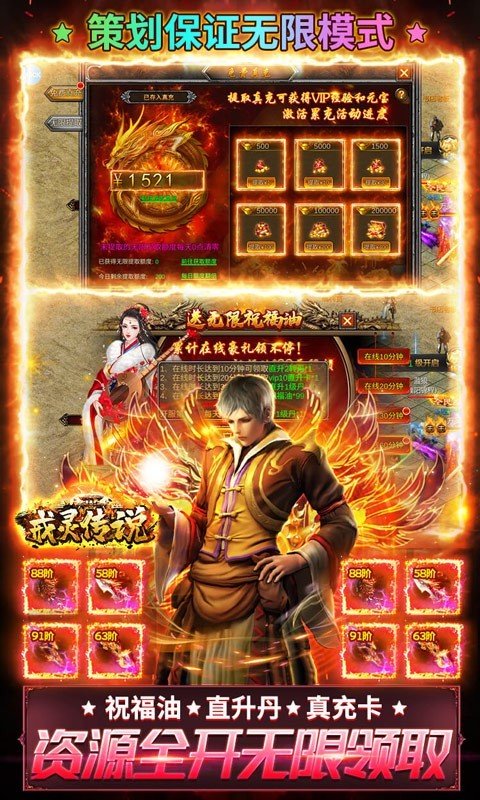 戒灵传说BT版是一款经典传奇类手游。每日登录送海量等级直升丹,在线就送直升2转转生丹,无限点击无限领取,拿到手软。首充就送全套高战土豪时装、真实10倍攻速永久特权、红色绝版传奇武器,每天完成指定任务还能无限获得真充。