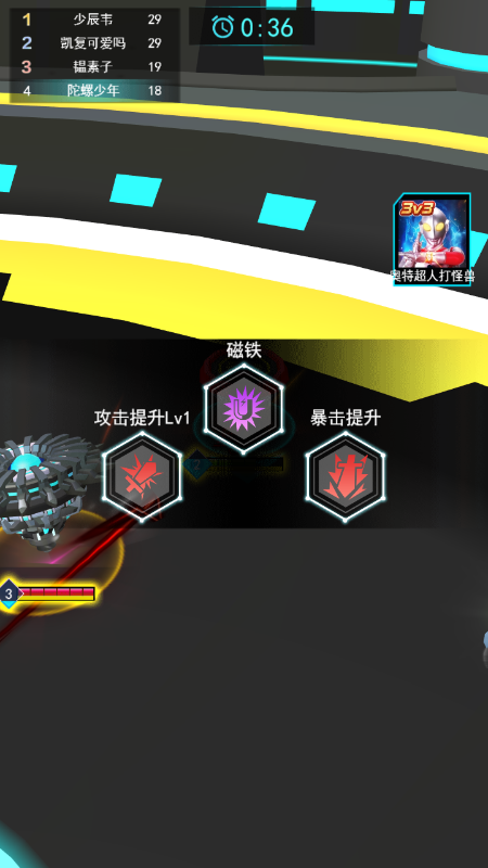 3.通过不断的陀螺来提升你的技能,可以跟任意的敌人来PK
