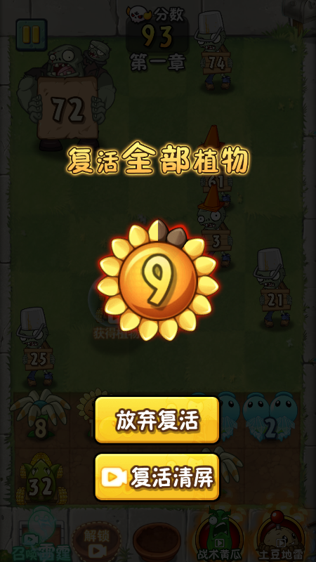 3.完成一个关卡后,可以获得金币,金币也可以用来购买各种各样的道具或者植物