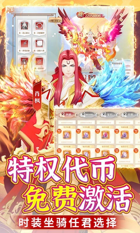 永久累充10000元:影·长生剑卡*1、破甲元魂*10、剑仙突破丹*500、仙品剑仙升星丹*30