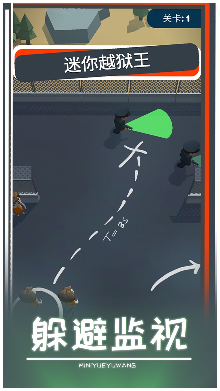 迷你越狱王,一款玩法不错的卡通3D俯瞰地图闯关游戏。迷你越狱王游戏中有很多的警卫出现,玩家需要控制自己的角色开启自己的躲避,注意不要给光亮照到,还有就是不要给巡逻的人抓到。你可以选择自己的计划来进行自己的闯关。
