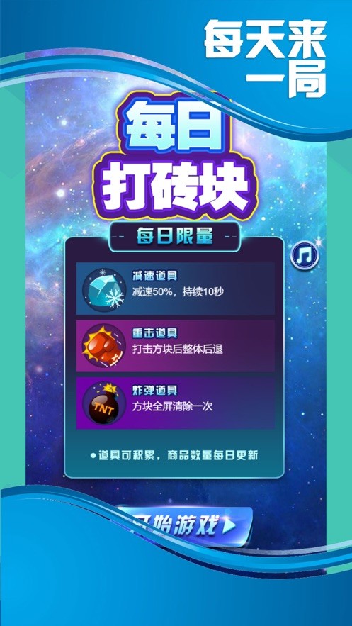 每日打砖块是一款精品制作的休闲趣味闯关手游,每日打砖块游戏边听音乐边动态打砖块,拿起简单的玩法,非常适合玩家在休闲无聊时玩,点击屏幕和相应的砖块,获得属于你的奖励挑战完成任务,很多挑战会给你带来更多精彩,不同的休闲玩拼图的乐趣,为广大玩家不一样的休闲生活带来更多的乐趣!