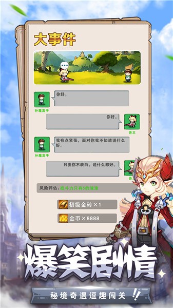 这款游戏里面的各种玩法非常的受欢迎,而且可以任意选择更加厉害的敌人来对决,随时可以获得很多高额的奖励,采用了经典的放置玩法,游戏里面的氛围比较的轻松,不会带来很多的压力,会有很多全新的冒险场景可以体验。