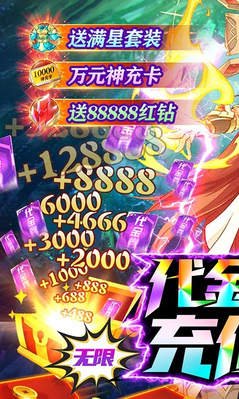 影之痕福利版是一款Q版二次元ARPG手游。创角即赠送VIP9激活卡、10000元神充卡、红钻*88888、蓝钻*328888、1000W金币。在线即送满星套装,装备回收送红钻、套装、神技。现金券无限刷,充值档位全免。