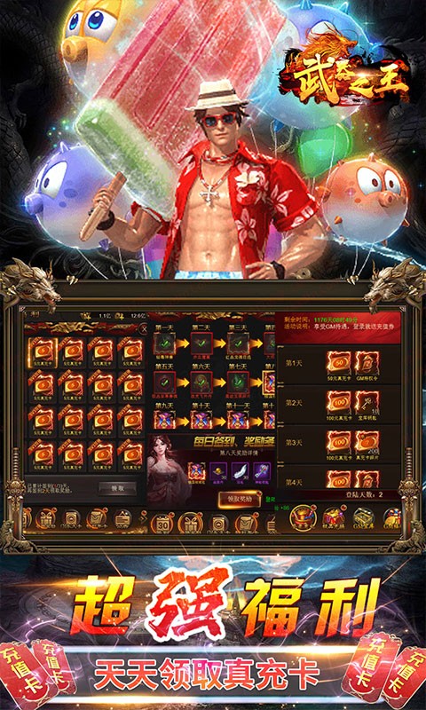 武器之王福利版是一款大型多人在线的经典传奇类手游。上线即送VIP15、热血神剑(1阶)*1、职场达人(角色时装)*1、武圣体验装*1。每日登录畅领无限真充卡,超变态投资千倍返,全新珍宝阁一折购,让你轻轻松松做土豪!