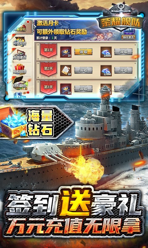 荣耀舰队可盘版是一款现代军事海战题材的策略卡牌手游。多日连续登陆免费领超级战列舰-纳尔逊,无门槛闯关领万抽。闯关推图100%爆真充,升级无限领真充。线下福利爆不停,各种福利拿到手软。感兴趣的朋友们快来下载吧!