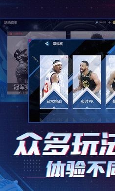 4、多种玩法:游戏提供了多种PVP和PVE玩法,如“冠军之路”模式中的挑战赛和季后赛,实时对战的“实时PK”模式以及排位赛等。玩家可以与其他玩家一起竞技,展示自己的篮球智慧和战术能力。