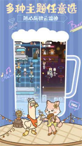 动物酒吧手机版是一款特别新颖的模拟经营游戏。游戏的主角是一群非常可爱的小动物,玩家化身为一名小动物,在这里轻松的开启自己的经营模式,按照自己的想法开创一个比较有意思的酒吧,吸引更多的动物来这里进行蹦迪娱乐。