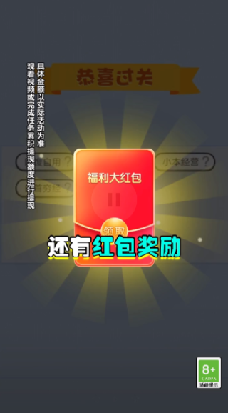 2.只要顺利的找到每一个关卡的答案,就可以获得相应的奖励。