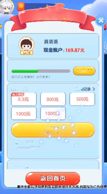 3.只要完成关卡挑战,就能得到相应红包,满0.3即可到账。