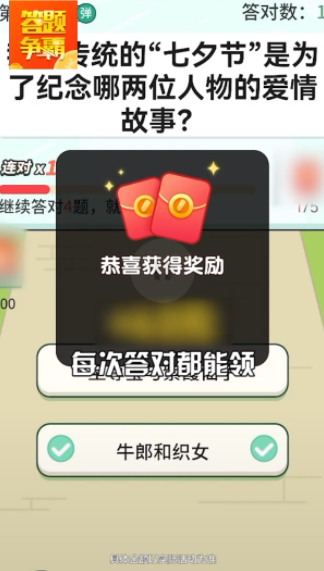 2.每答对一道题都可以领取相应的奖励,打的越多赚的越多。