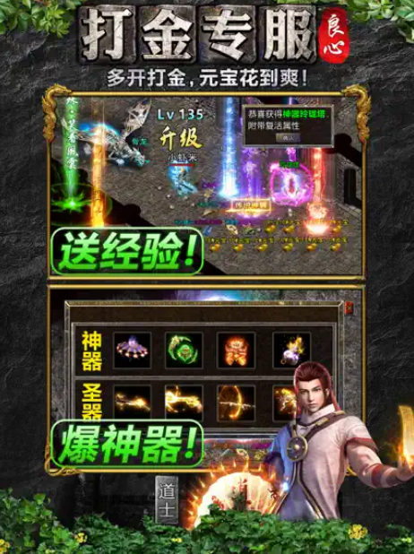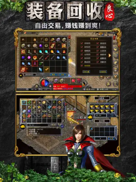 良心传奇正版手游是款经典角色扮演类型的游戏,在游戏中可以让玩家随时的来进行各种征战的参与,从而就可以展开不一样的对决,并且凭借自己强大的实力就能获得武器装备,也能收集更多的材料,快速的进行厮杀,让自己在皇城当中得到宝物。