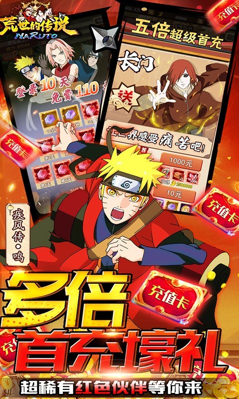 单日累计充值200元:神圣忍具*100、符文精华*1000、忍者口粮*100