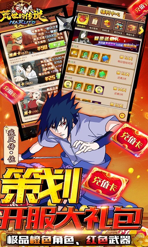 单日累计充值800元:六道兵粮丸*5、忍者精华(橙)*50、橙装碎片*1500