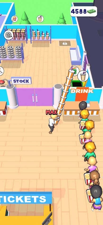 2.升级设施,给消费者带来更好的观感,不断解锁电影院的各个区域,各个设施。