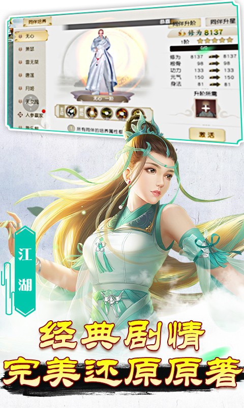 1、完美还原原著经典的剧情内容,精美细腻的人物建模设计,古风古色的游戏画风,全新的支线剧情,让玩家更沉浸其中。