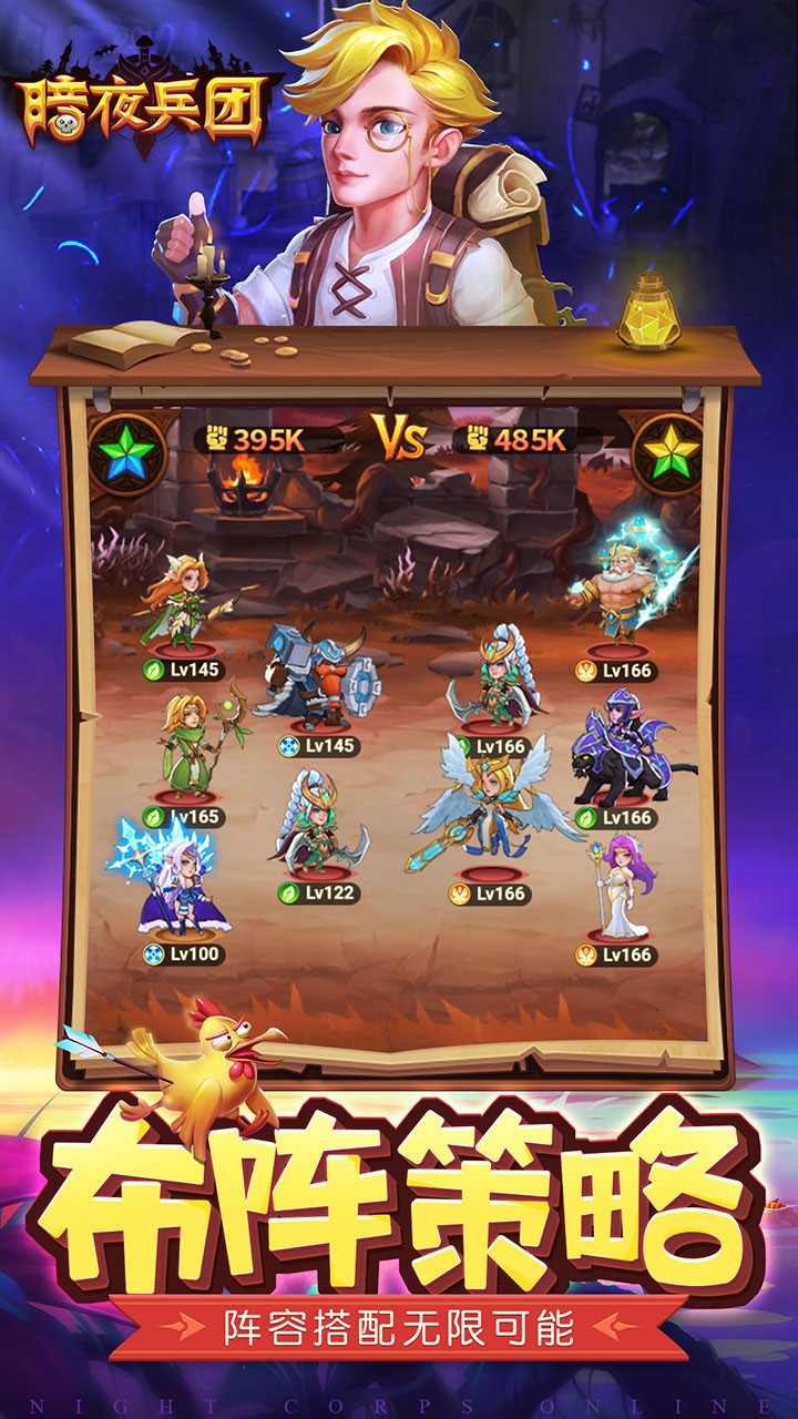 3、阵容搭配千变万化,策略制胜,挂机也能游玩,佛系护肝养肾。