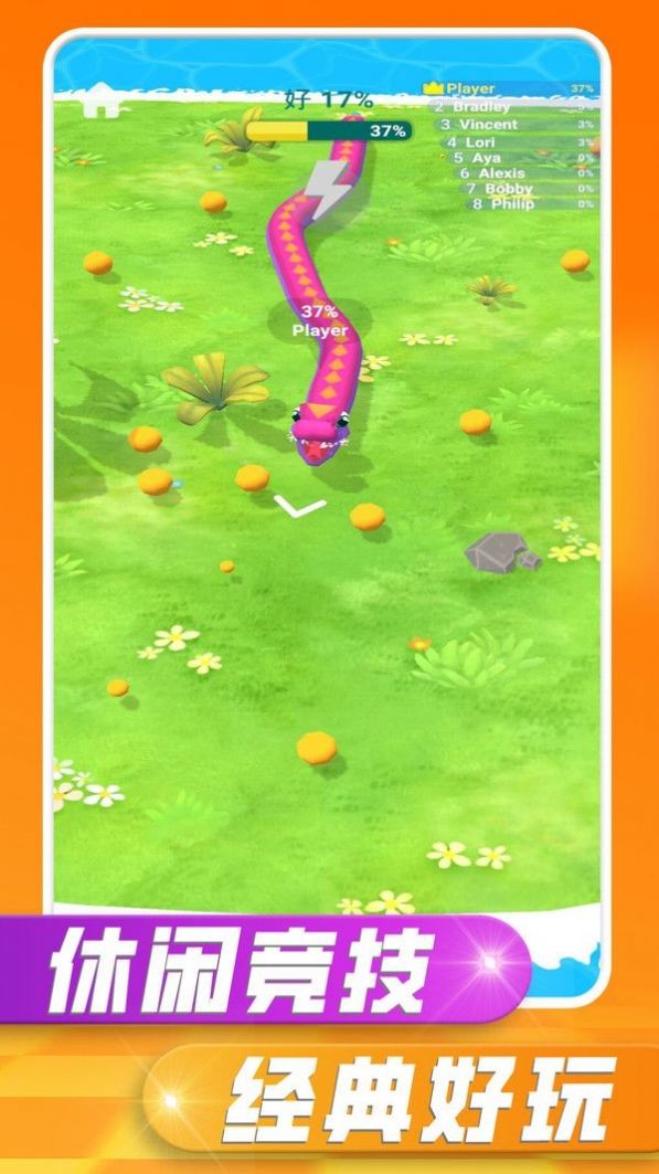 1.可爱的游戏画风,Q萌的小蛇以及简单的玩法,可以使玩家有一个非常轻松的游戏体验。