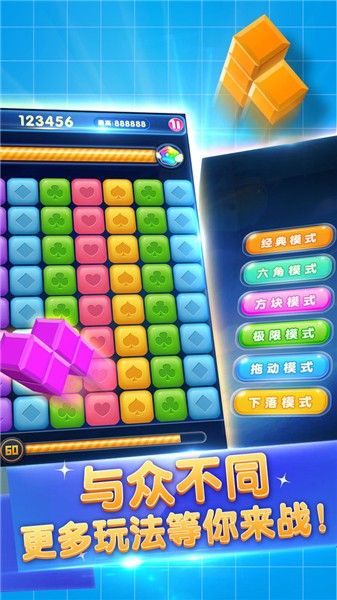 俄罗斯六角方块单机版这是一款比较有趣的休闲闯关类的游戏,在游戏里有很多的挑战模式,非常的精彩,里面有很多的俄罗斯游戏消除玩法,带来了无限的快乐,操作上是非常容易上手的,体验游戏的更多精彩,有很多的关卡,等待着玩家去进行解锁,感受游戏的极大乐趣,展示了玩家的实力。