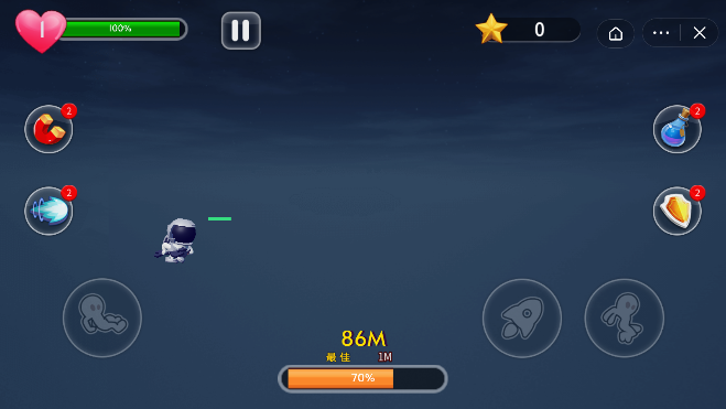 太空大冒险是一款炫酷横版跑酷冒险游戏,选择喜欢的太空人造型在宇宙中自由跑酷,卡通场景设计各种关卡道具多样可以自由选择,太空大冒险游戏自由越过陷阱在太空跑酷,还有更多有趣的挑战在前方等着你,控制你的太空人不断的通过关卡赢得游戏的胜利