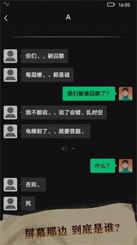 短信聊天驱动的恐怖文字游戏。玩家将帮助不同的伙伴解决离奇事件。在恐惧审判的电梯里,你会通过聊天来选择不同的内容,体验不同的剧情来感受不同的冒险,不断克服各种困难来体验最刺激的冒险。