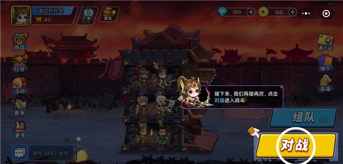 2.在三国中对战,对战时需要注意人物英雄的摆放,不能让敌人的战士打击到自己阵容的主公