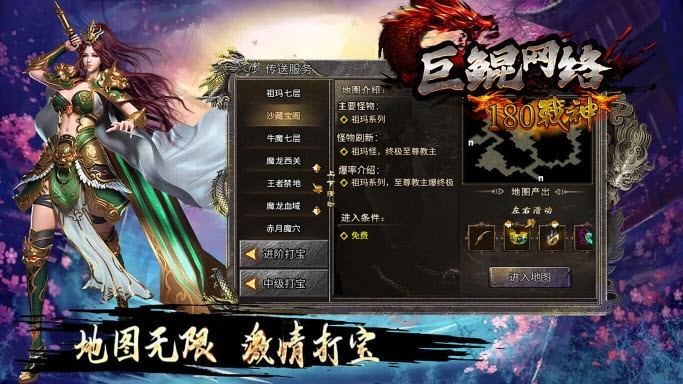 巨鲲网络180战神,一款可以回收装备的热血传奇游戏。巨鲲网络180战神游戏副本任务多,完成挑战就有大量的奖励,这里还有超多的攻沙战斗可以获得新道具,超多的装备饰品可以获得,分分钟进行全新的boss挑战,野外刷图,感受不一样的刺激乐趣。